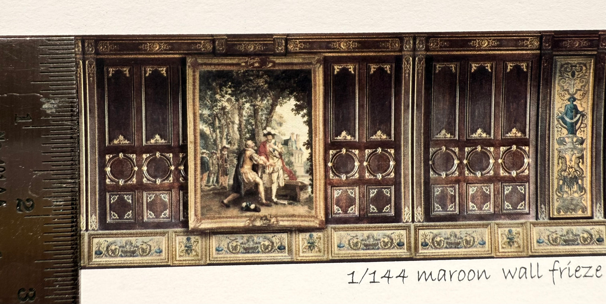 1/144 scale wallpaper maroon wall frieze with window & panels