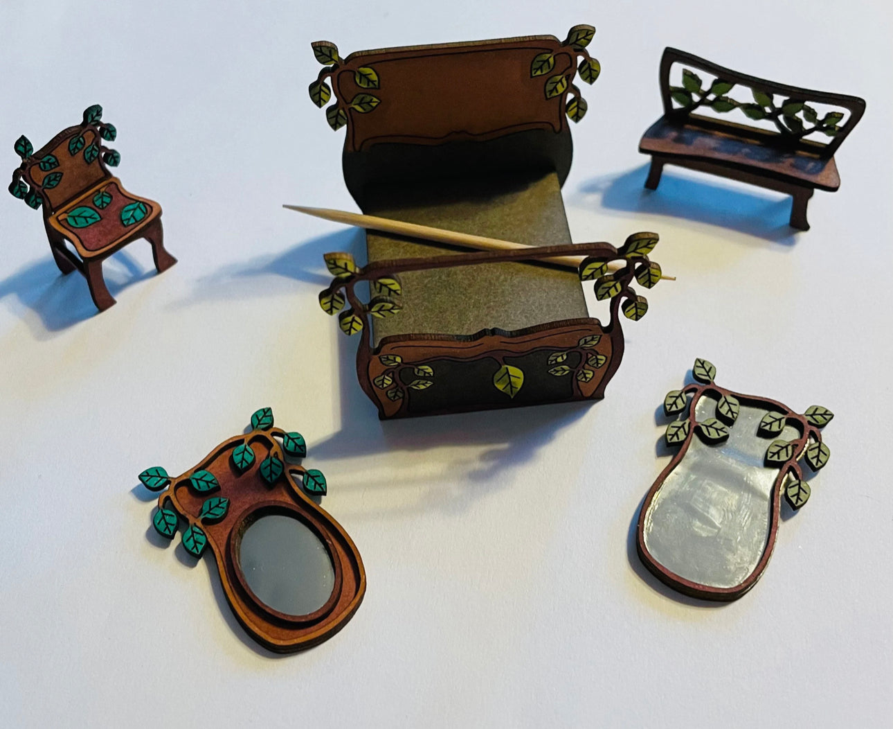 This 1/48th scale kit features an intricate "Enchanted Forest" style bed. With classic touches such as floral engravings and beautiful carving detail on the bed posts, this kit is a unique and beautiful addition to any miniature collection.