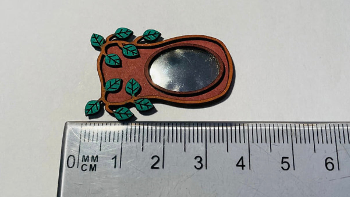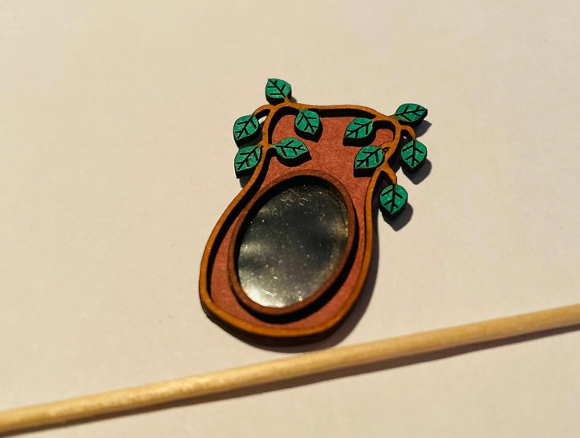 This 1/48th scale kit contains an Enchanted Forest Mirror crafted in an oval shape by Raptoor Crafting with the accompanying permissions. The mirror is constructed from paper and not glass, measuring 3.6 cm in height and 2.5 cm in width. Flat-packed and ready for assembly in any chosen colour.