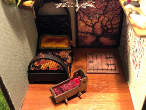1/48th quarter scale Tudor baby cot.