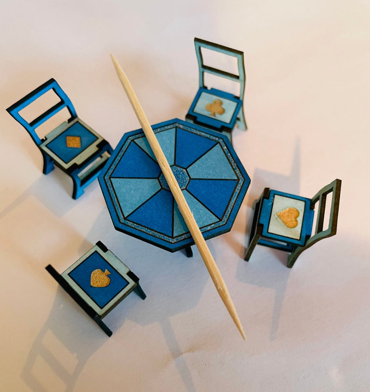 Wonky Wonderland collection. GAMING TABLE & 4 CHAIRS. 1/48th scale KIT