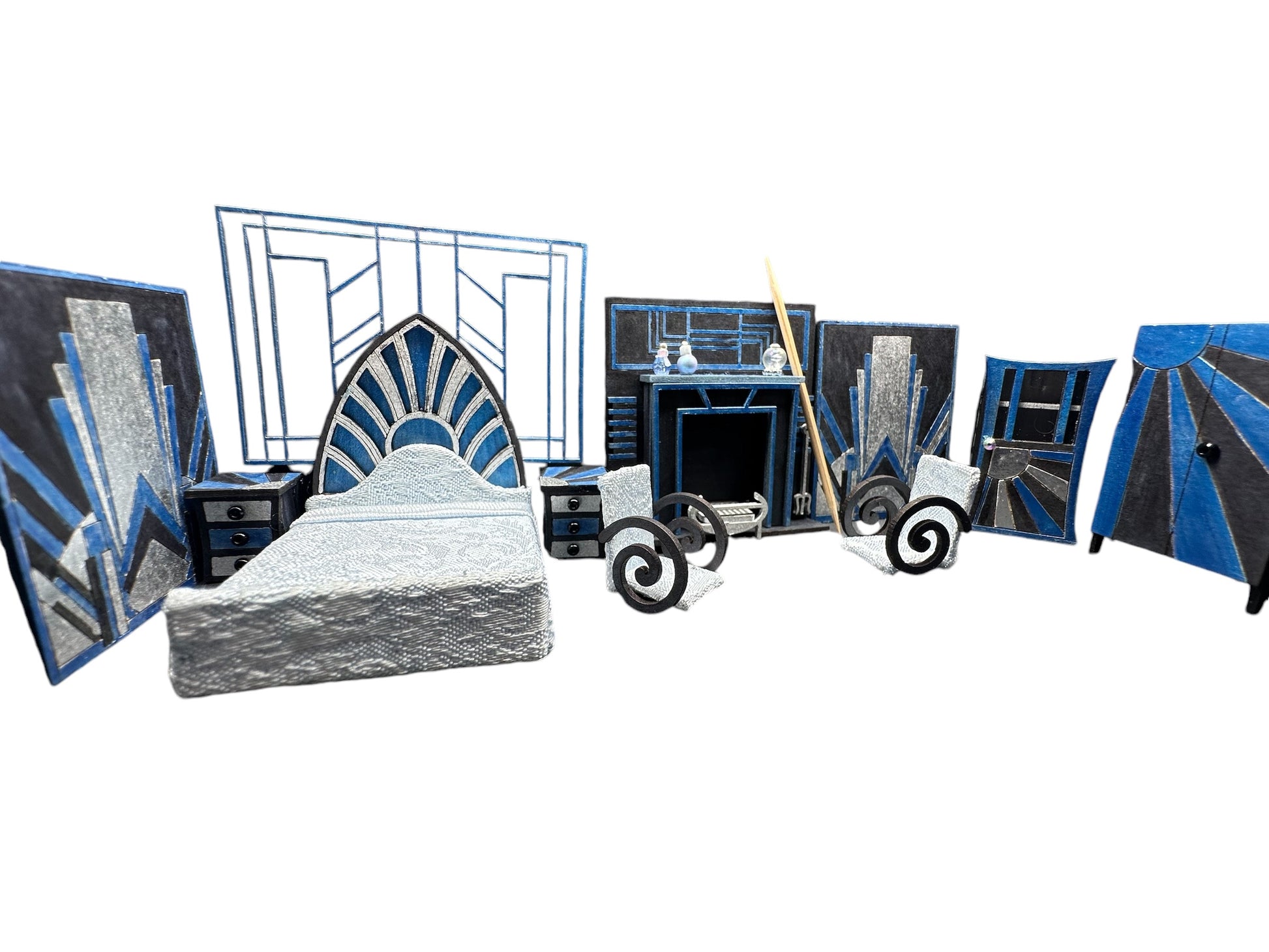 ART DECO Peacock KING size bed & wall panel . 1/48th scale