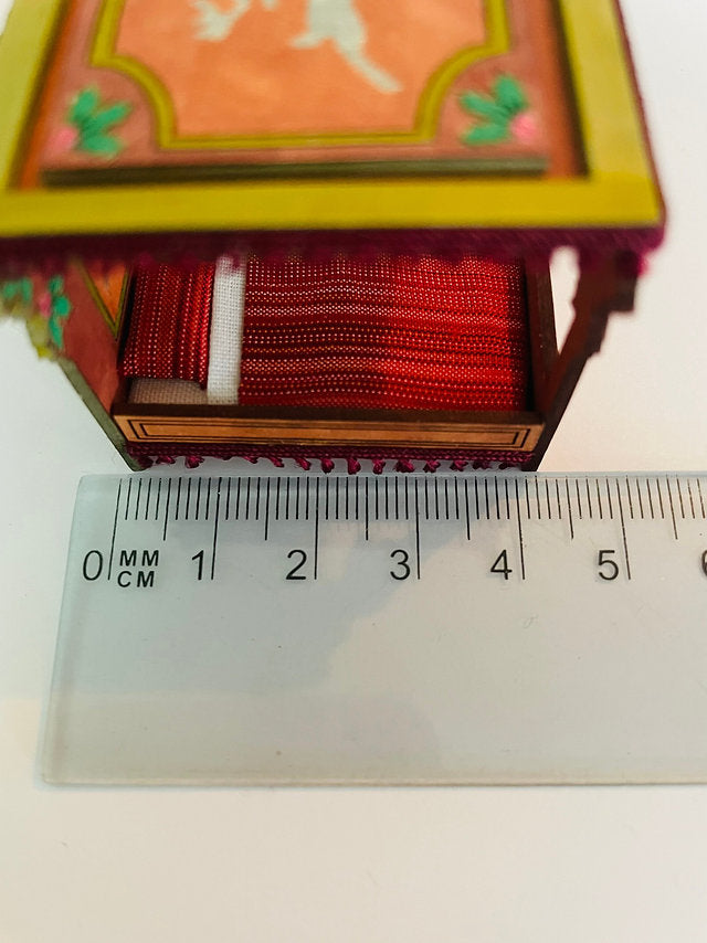 Flat packed, in kit form and ready for construction in colours of your own choosing. Fabric and ribbon for the bed is not included. These are suggestions for decoration only.
