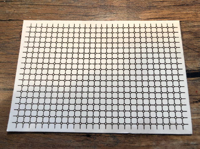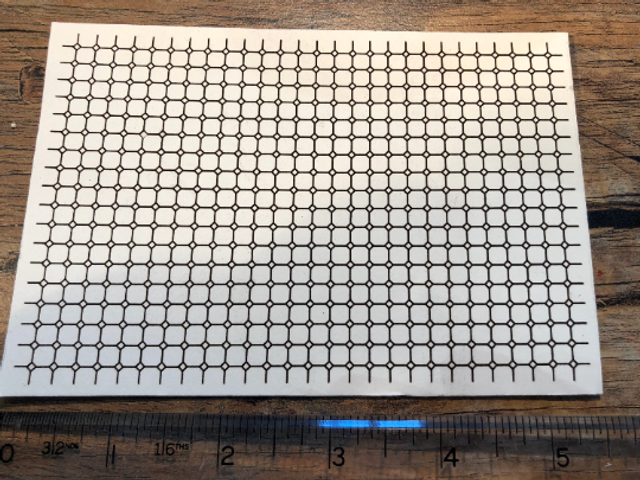 5.5 inches length by 3 3/4 inches wide laser cut onto card or balsa. The card may vary in colour.