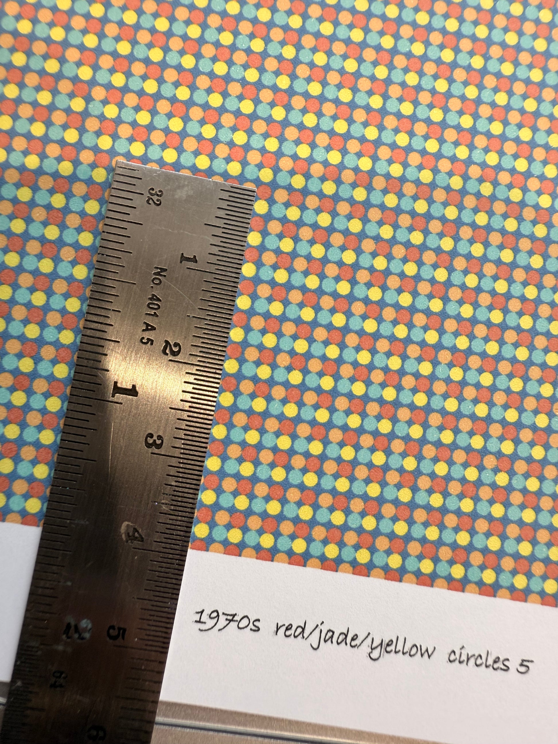 fabric 1970s red/jade/yellow circles 5 1/48