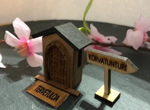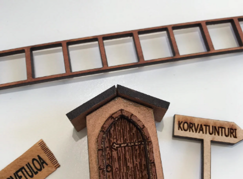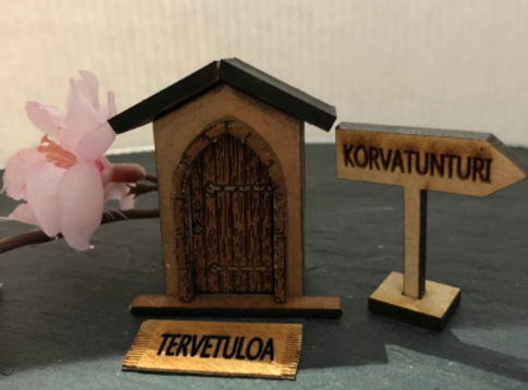 A small door for your fairies or tonttu to visit. Complete with extended ladder for higher places, welcome mat and sign. The ladder is 11.8 cm long.