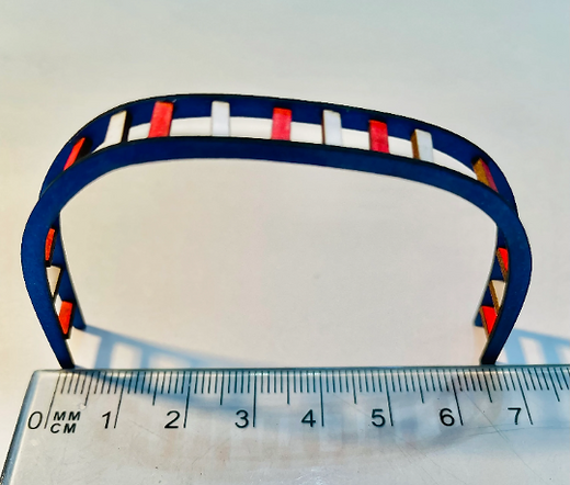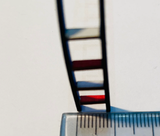 Size: 6.2 cm long x 0.9 cm wide x 4 cm high at the highest point.