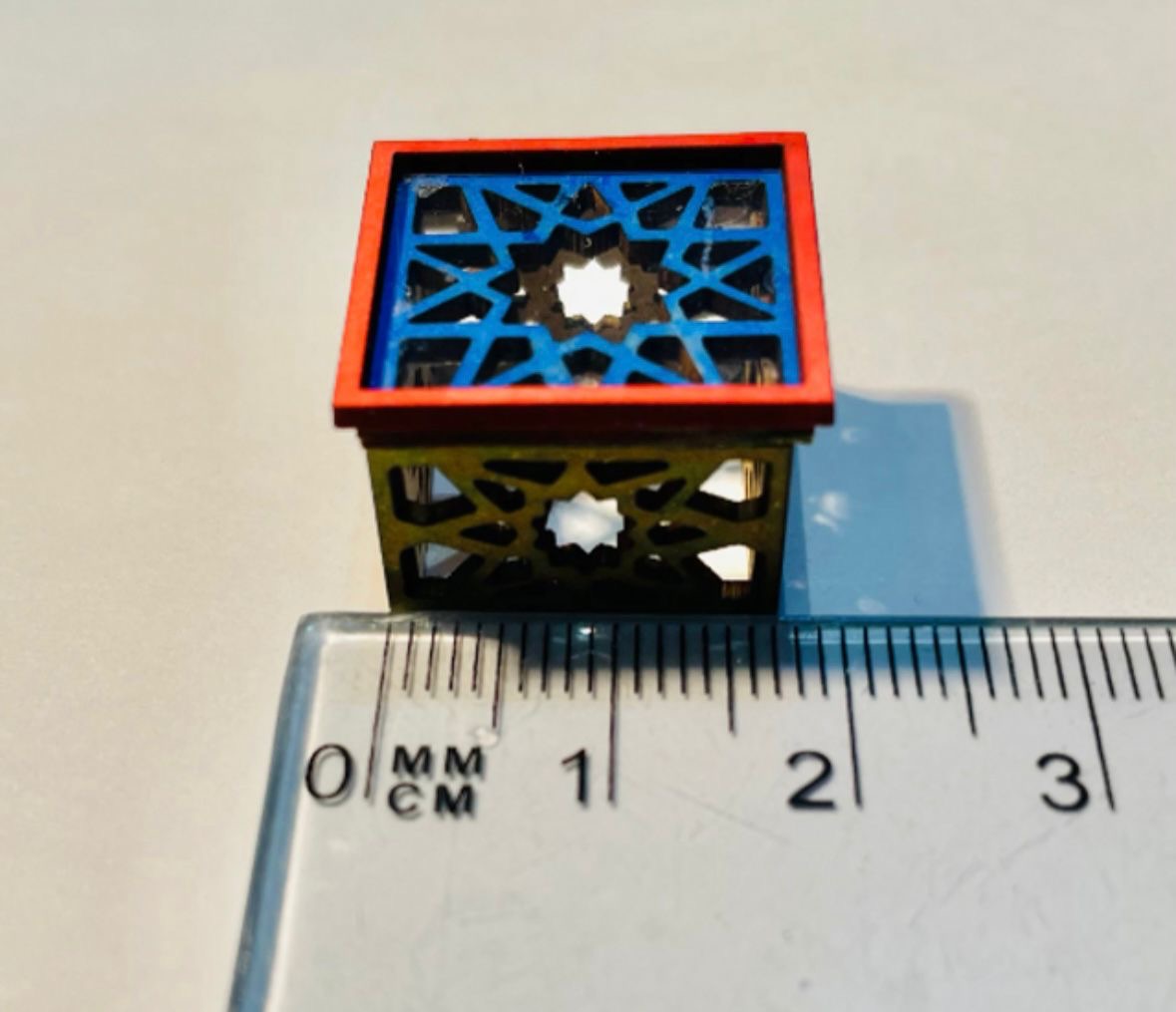 Size: 2 cms wide at the top x 1.8 cms x 0.7 cms high.