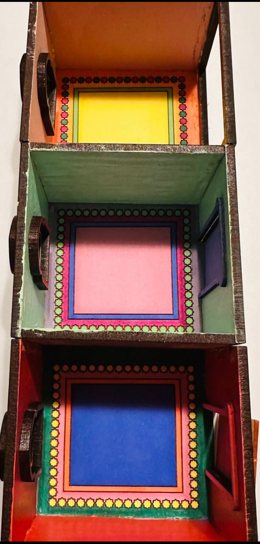 Size: main room: 10 cms long x 8 cms deep x 8.2 cms high.