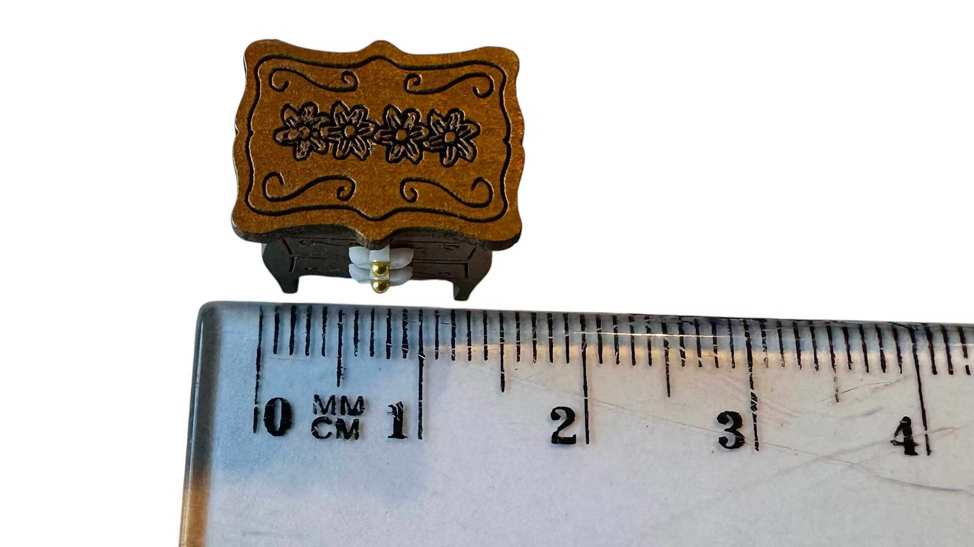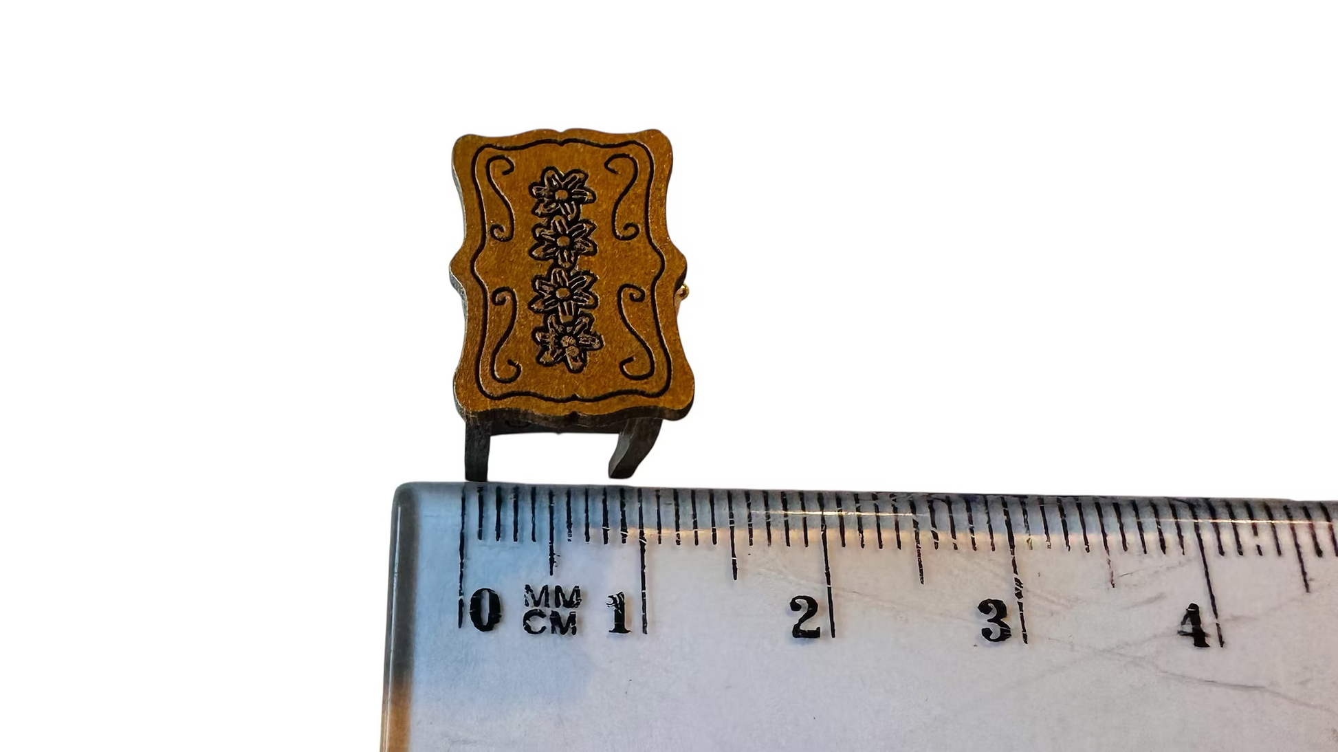 Size: 1.5 cms wide x 1.1 cms deep x 1.7 cms high at the deepest points