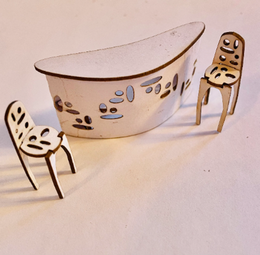 Flat packed in kit form and ready for construction in colours of your own choosing. I used Copic and pro marker staining pens rather than paint.
