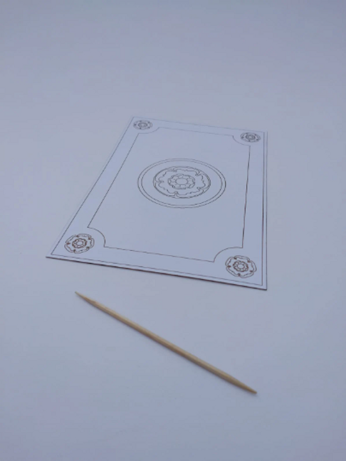 1/48th Tudor rose floor or ceiling panel laser engraved onto a mountboard card.