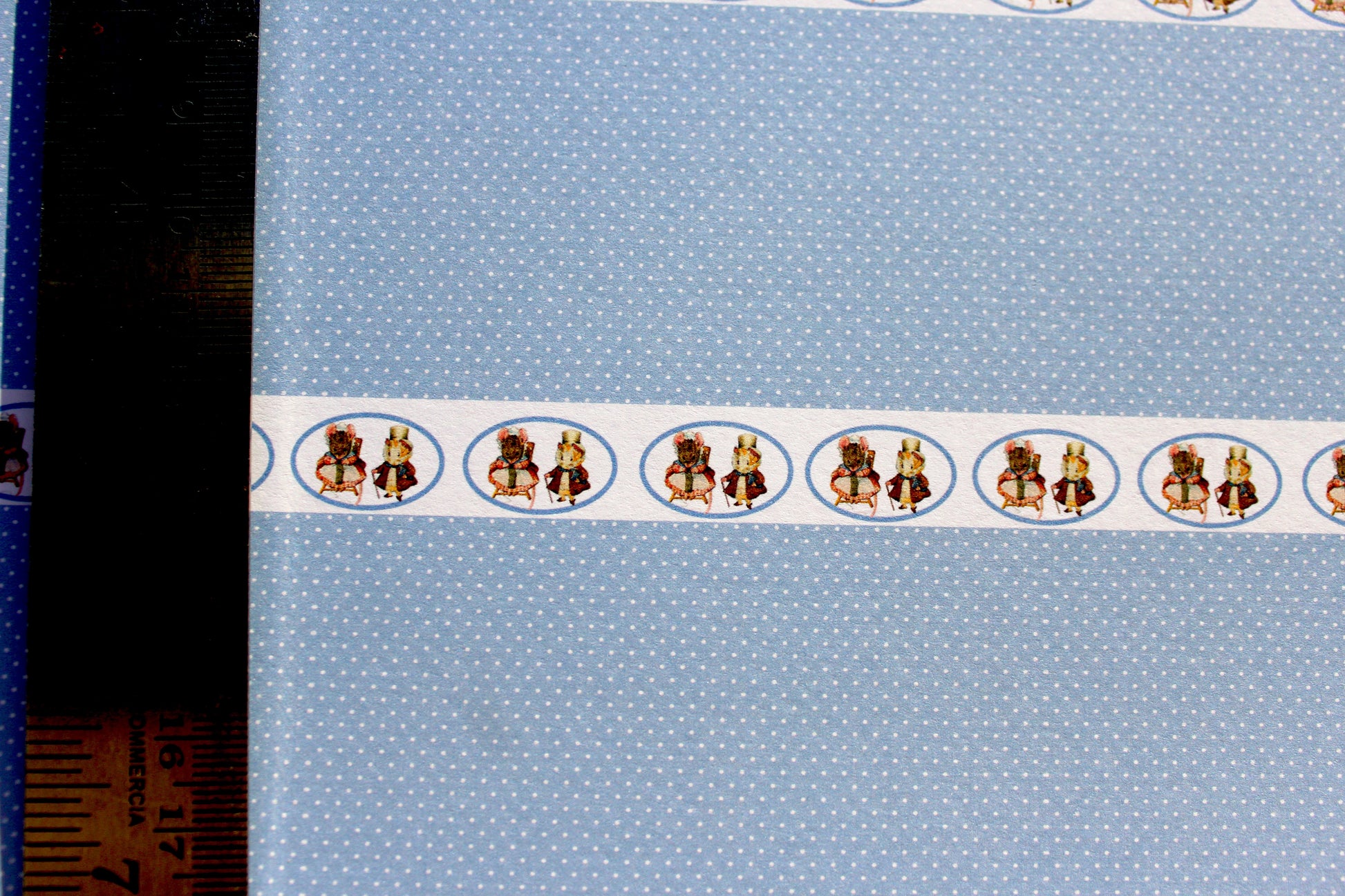 FABRIC Beatrix Potter 5 blue check ( 2 mice border)