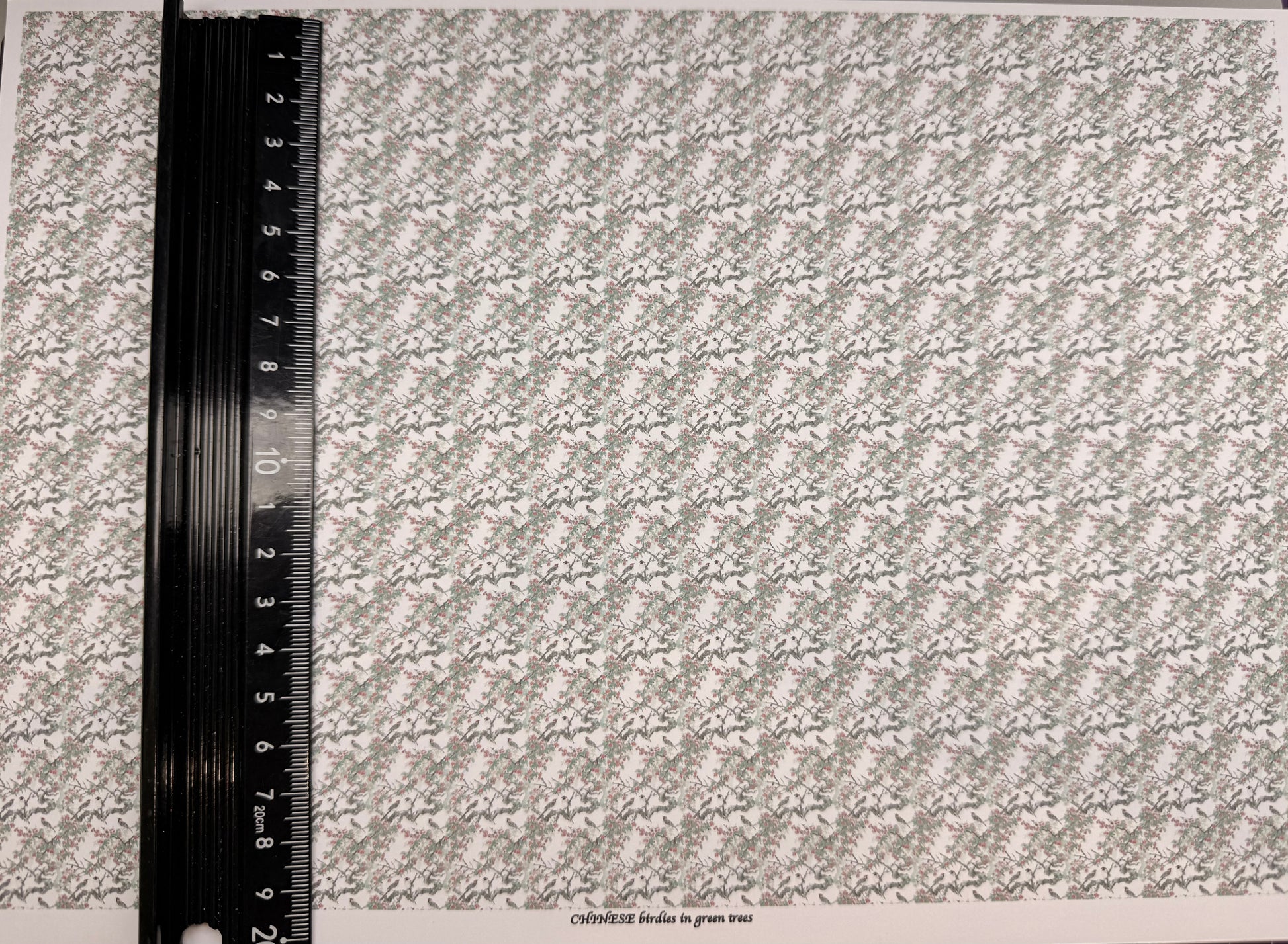 FABRIC Chinese birds in green trees