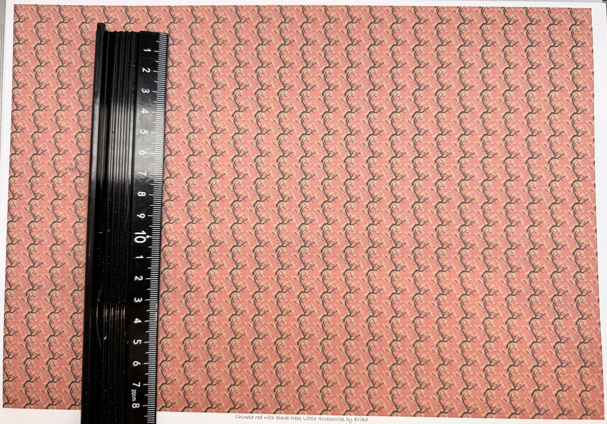 FABRIC CHINESE RED WITH BLACK TREES
