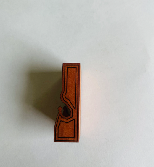 Size: 2 cms wide x 3.8 high x 1.2 cms deep at the deepest point.