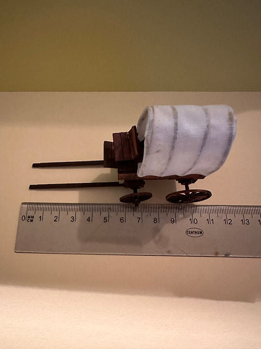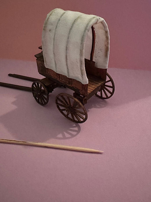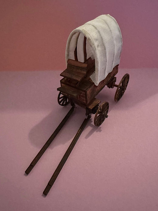 The covered wagon consisted of a wooden bed covered by canvas stretched over wooden hoops riding on top of iron-covered wooden wheels and iron axles. Covered wagons had two main purposes: transporting people with their belongings and supplies on long journeys and hauling cargo across difficult terrain.