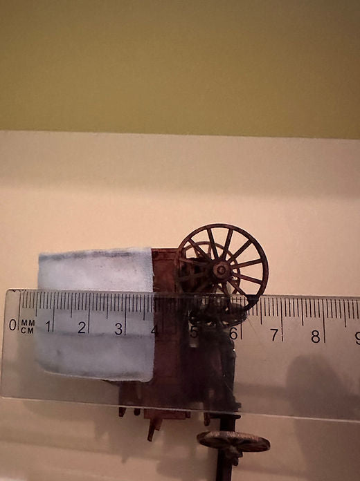 Size: 12 cms long including the poles x 3.5 cms wide at the wheels x 6.5 cms high at the highest point.