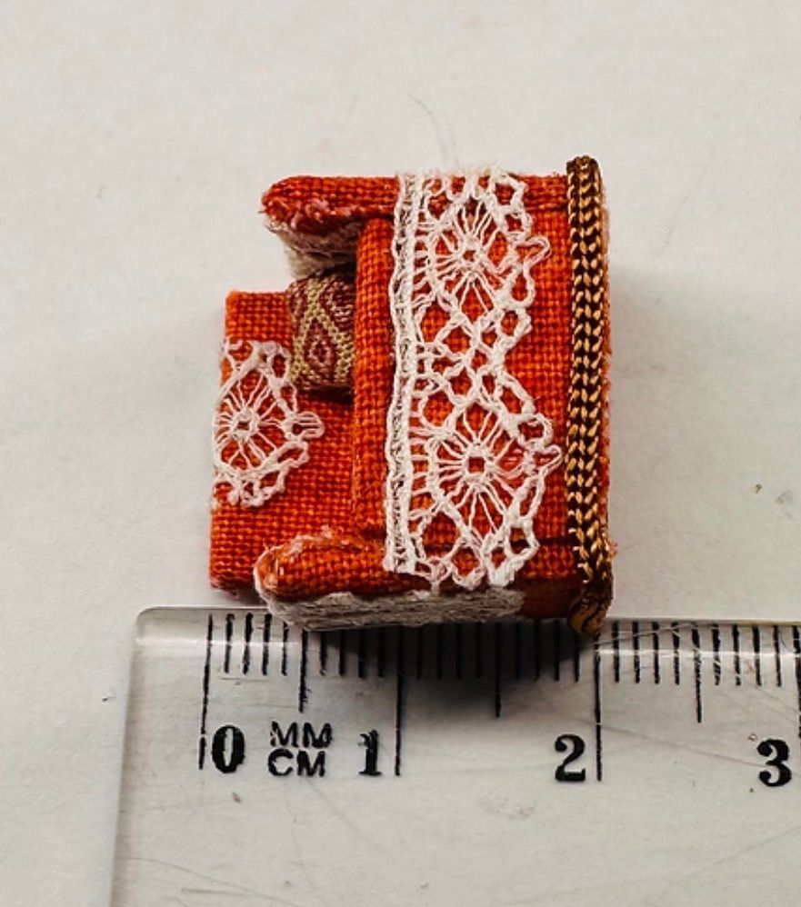 Size: sofa: 3.5 cms long x 1.5 cms deep x 2 cms high at the highest point.