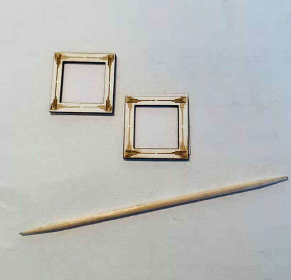 1/48th kit, Art Deco picture frames, 8 in a pack Size: 2 cms high x 2 cms cms long. Flat packed, in kit form and ready for construction in colours of your own choosing. Pictures not included. Can be used in 1/48, 1/24 and 1/12 houses depending on which picture you wish to use. Designed and copyrighted by Raptoor Note: our work conforms fully to the General Product Safety Regulations as laid down by the EU.
