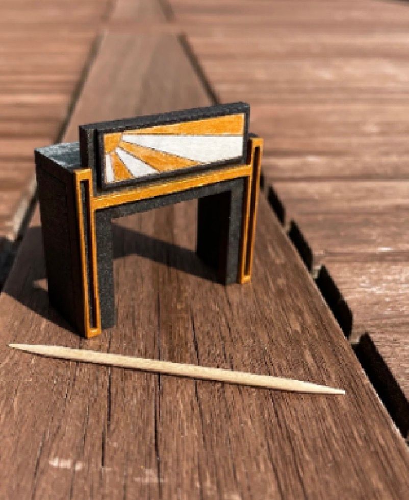 1/48th Art Deco fire surround with sun panel Size: 4.5 cms wide at the widest point x 4.5 cms high including the sun panel. Flat packed in kit form and ready for construction in colours of your own choosing. Marble paper not included, this is just an idea for decoration. The Art Deco period is typically in the years of the 1920s and 1930s, and takes its name from the 1925 Paris exhibition. This was the beginning of the first truly modern style after the Edwardian period (1901-1910). Designed and copyrighted by Raptoor.