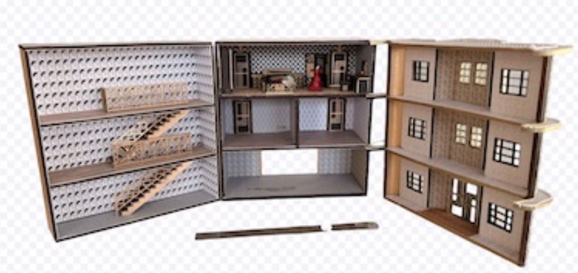 1/48th kit, Art Deco hotel Flat packed, in kit form and ready for construction in colours of your own choosing. This is an advanced kit for an experienced dolls house maker. Size: width 168 mm, height 169 mm without the flamingo on top, depth including all 3 sections together 120 mm. Ground floor height is 53.5mm Middle floor height is 55 mm Top floor height is 55mm I combine postage, so please send me a message to discuss. Designed and copyrighted by Raptoor Note: our work conforms fully to the General Product Safety Regulations as laid down by the EU.