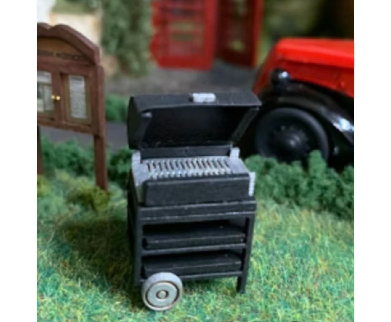 The lid of the bbq/grill can be left off to show the grill part, or can be closed,