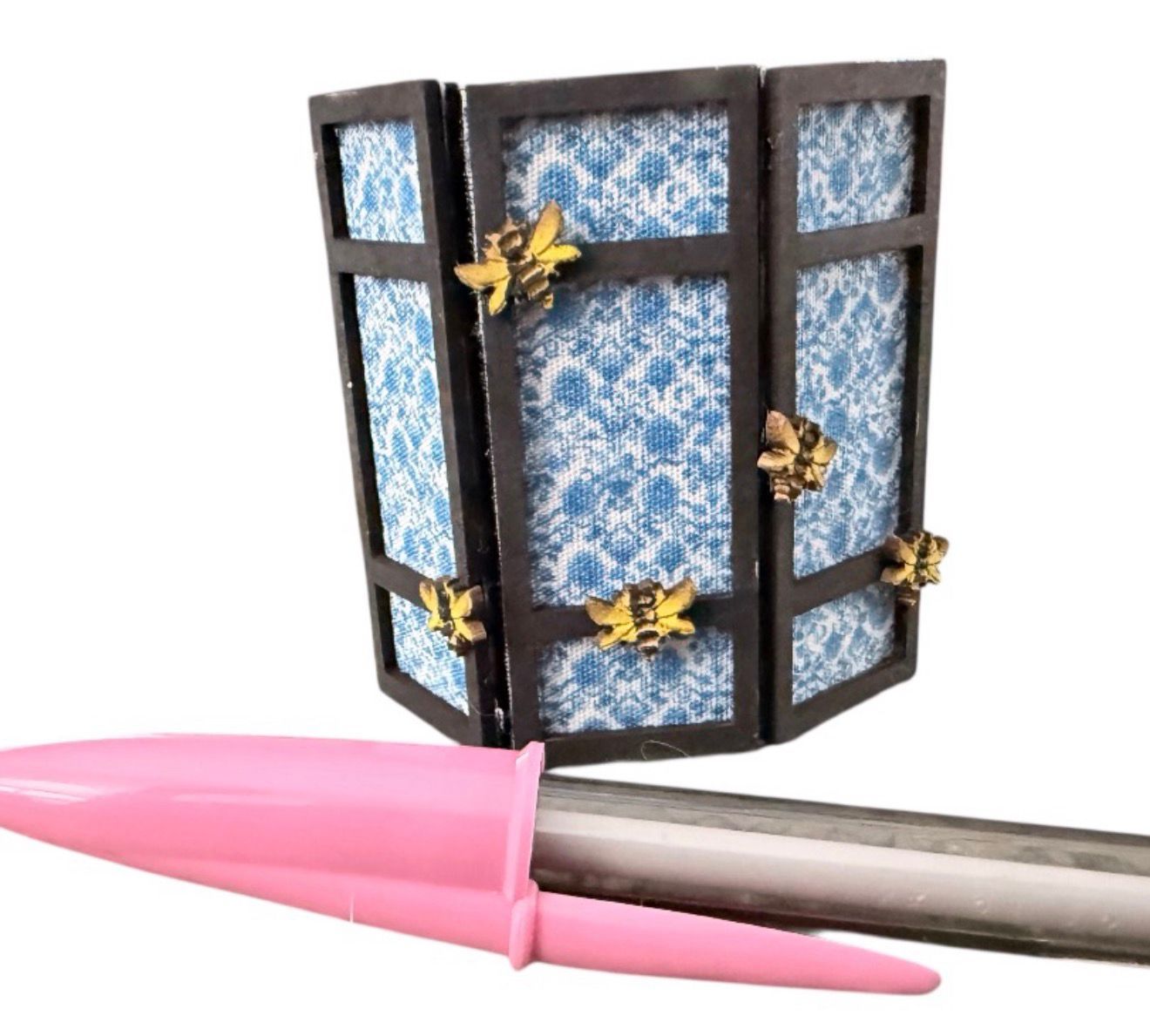 The quirky pretty design with tiny engraved bees to decorate the items with would grace any pretty bedroom - or even make a diorama for a friend who lives in Manchester - as this is the cities emblem - the choice is yours, with lots of lovely papers & fabrics to compliment.