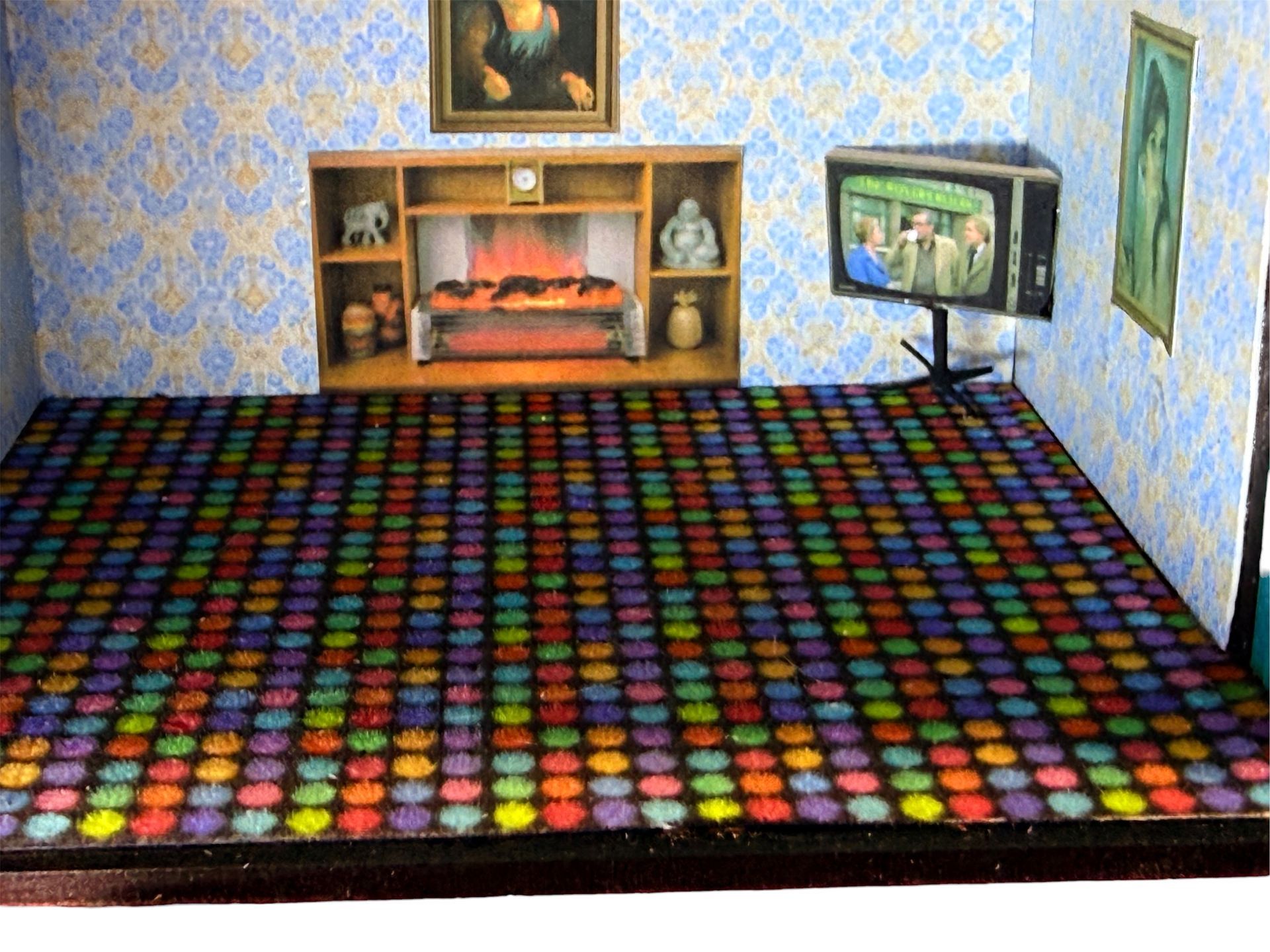 A sheet of A4 velour paper with a lovely textured surface to give a feel of carpet. Great quality, and most of our wallpaper/fabric designs will convert to carpet design