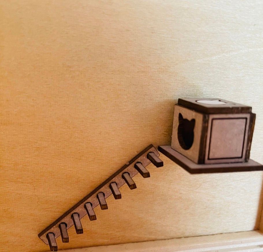 1/48th kit, cat cosy and ladder Size: cosy box 1.1 cms long x 1.3 cms high x 1.6 cms deep. Ladder: 3.2 cms long Flat packed, in kit form and ready for construction in colours of your own choosing. Designed and copyrighted by Raptoor Note: our work conforms fully to the General Product Safety Regulations as laid down by the EU.