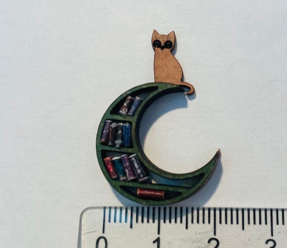 1/48th kit, cat crescent moon wall shelf Size: 2.1 cms at widest point x 3.3 high. Books not included, these are just an idea for decoration. Flat packed, in kit form and ready for construction in colours of your own choosing. I combine postage, so please send me a message to discuss. Designed and copyrighted by Raptoor Note: our work conforms fully to the General Product Safety Regulations as laid down by the EU.