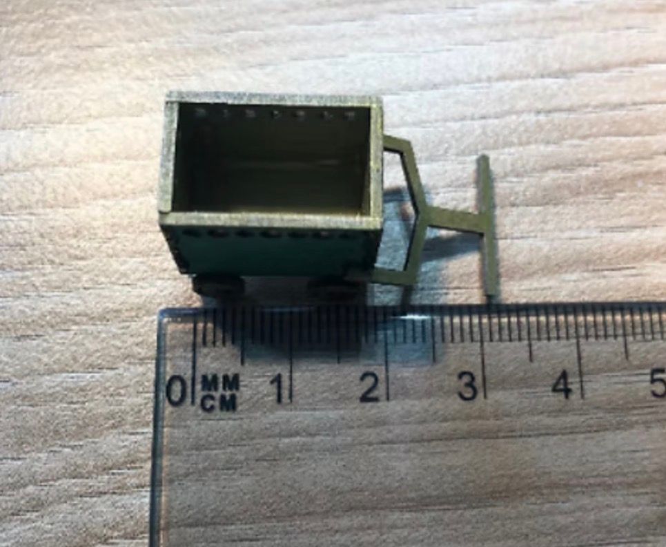 1/48th children’s mobile toy box. Size: 3.2 cms long x 1.6 cms wide. Flat packed in kit form and ready for construction in colours of your own choosing. Wheels are non-turning. Paper and stickers not included, these are just suggestions for decoration. Designed and copyrighted by Raptoor Note: our work conforms fully to the General Product Safety Regulations as laid down by the EU.