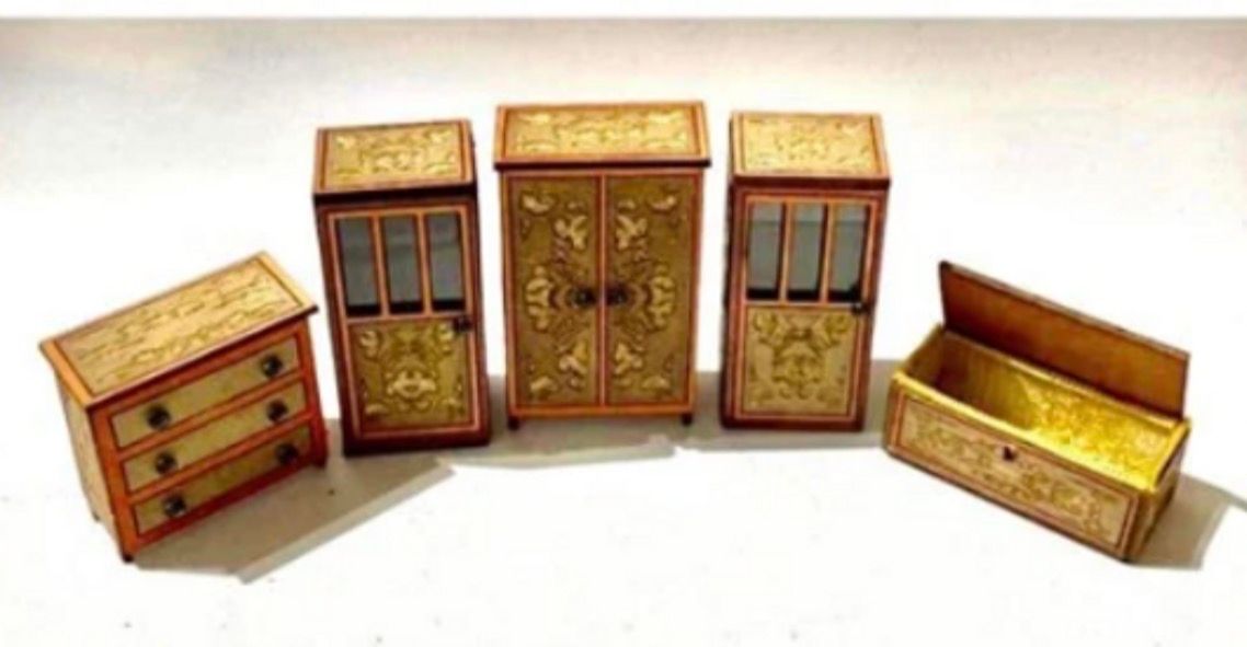 1/48th decorative chest of drawers. Flat packed, in kit form and ready for construction in colours of your own choosing. This is an advanced kit for an experienced dolls house maker. Size: 2.8 cms long x 2.6 cms high x 1.8 cms deep. Drawers are non opening. Bead colour may vary. Designed and laser cut by Raptoor. Note: our work conforms fully to the General Product Safety Regulations as laid down by the EU.