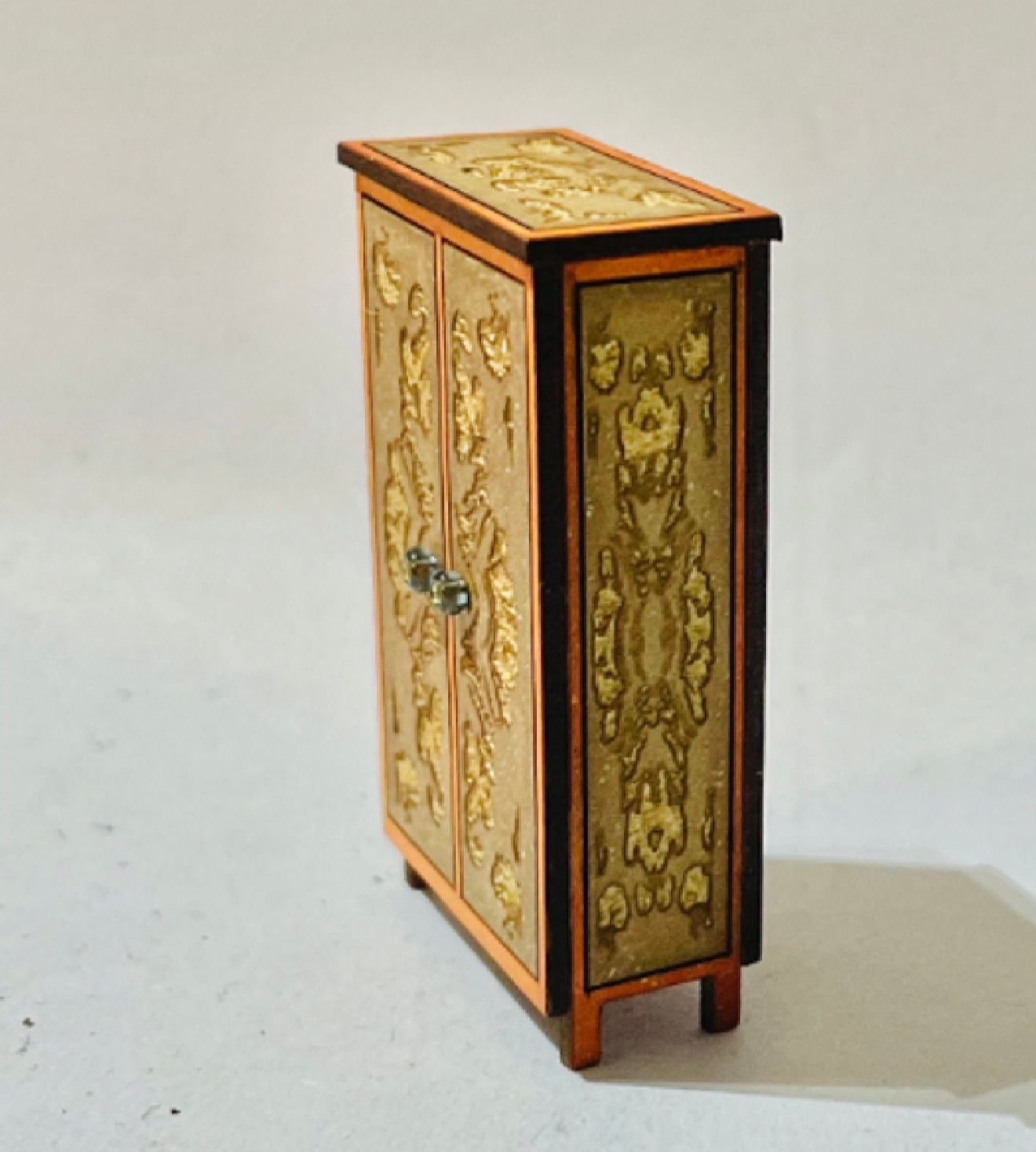 1/48th decorative wardrobe. Flat packed, in kit form and ready for construction in colours of your own choosing. T Size: 2.5 cms wide x 2.8 cms deep x 4.3 cms high Doors are non opening. Designed and laser cut by Raptoor. Note: our work conforms fully to the General Product Safety Regulations as laid down by the EU.