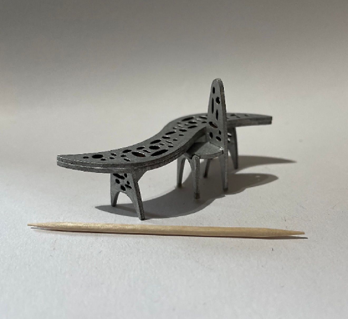 Final frontier desk and chair Size: desk: 6cms long x 1.1 cms high. Chair: 3cms high x 1.1 cms wide. Flat packed, in kit form and ready for construction in colours of your own choosing. I used copic and promarker staining pens rather than paint. Designed and laser cut by Raptoor.