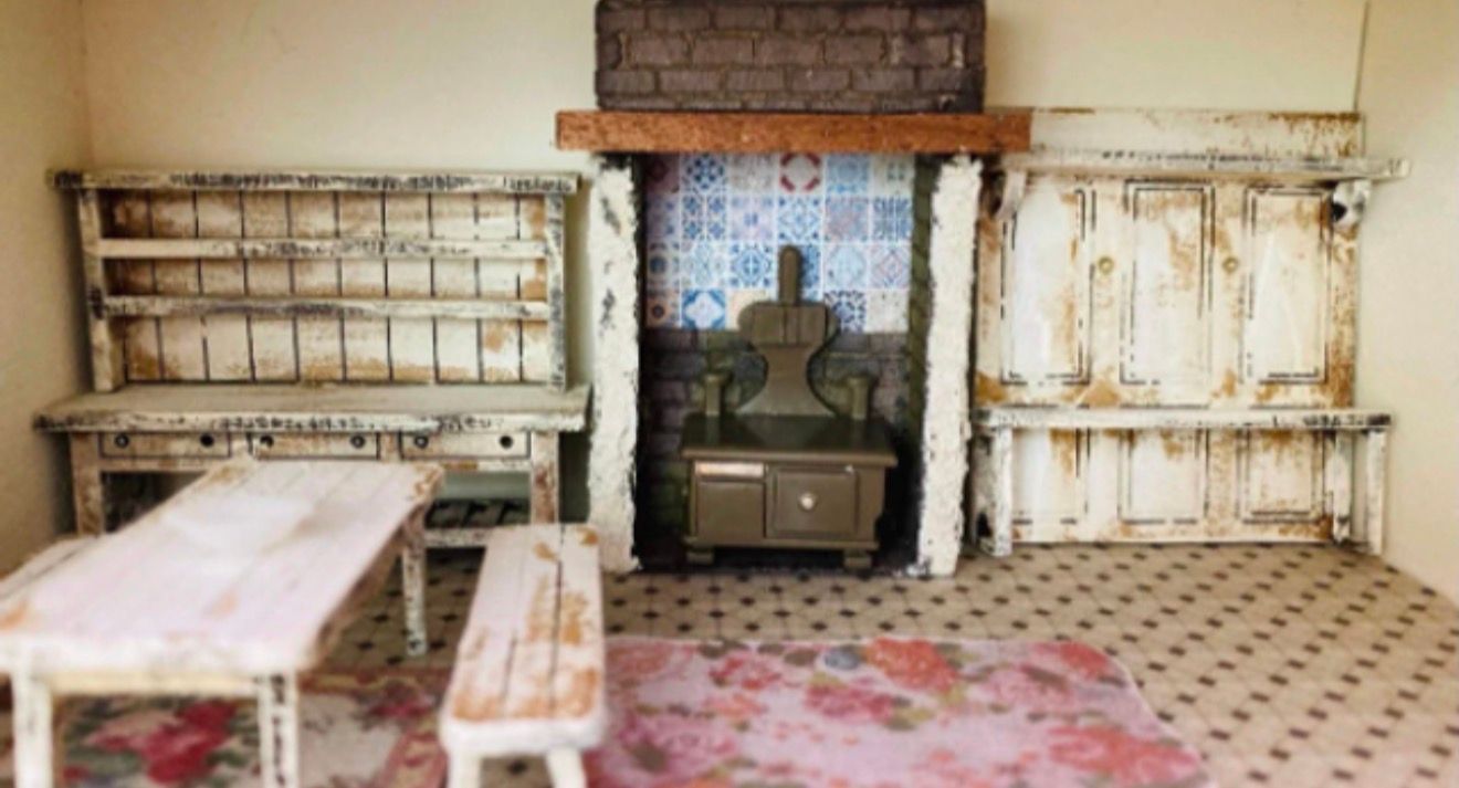 1/48th quarter scale fire place surround. Flat packed, in kit form and ready for you to construct in colours of your own choosing. The tiles and brick paper are just a suggestion for decoration. Size: 6 cms high to the mantle top x 1.4 cms deep by 4.3 cms wide end to end of the mantle. Including the chimney breast 6.3 cms high. A few fireplace or hearth is a structure made of brick, stone or metal designed to contain a fire. Fireplaces are used for the relaxing ambiance they create and for heating a room. Historically they were used for heating a dwelling, cooking, and heating water for laundry and domestic uses. A fire is contained in a firebox or firepit; a chimney or other flue allows exhaust to escape. A fireplace may have the following: a foundation, a hearth, a firebox, a mantelpiece; a chimney crane (used in kitchen and laundry fireplaces), a grate, a lintel, a lintel bar, home overmantel, a damper, a smoke chamber, a throat, a flue, and a chimney filter or afterburner. On the exterior there is often a corbelled brick crown, in which the projecting courses of brick act as a drip course to keep rainwater from running down the exterior walls. A cap, hood, or shroud serves to keep rainwater out of the exterior of the chimney; rain in the chimney is a much greater problem in chimneys lined with impervious flue tiles or metal liners than with the traditional masonry chimney, which soaks up all but the most violent rain. Some chimneys have a spark arrestor incorporated into the crown or cap. Designed and copyrighted by Raptoor Note: our work conforms fully to the General Product Safety Regulations as laid down by the EU.
