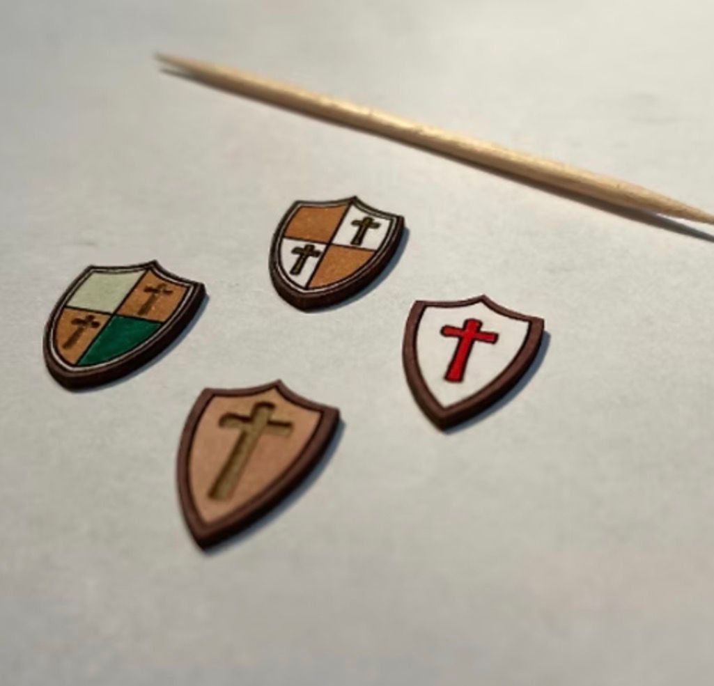 1/48th kit, set of 4 shields, quarter scale Flat packed, in kit form and ready for construction in colours of your own choosing. Size: table: 2 cms high x 1.1cms wide at the widest point. Designed and laser cut by Raptoor. Note: our work conforms fully to the General Product Safety Regulations as laid down by the EU.