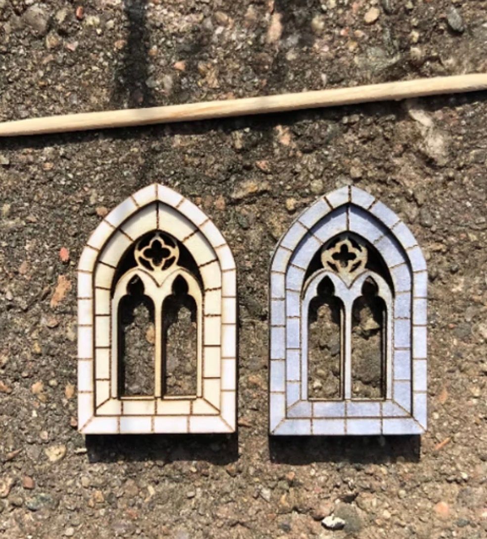 1/48th gothic windows, 4 in a pack. Flat packed, in kit form and ready for construction in colours of your own choosing. This is an advanced kit for an experienced dolls house maker. Size: 2 cms wide x 3 cms high from the top of the window .5 cms deep. Gothic windows are in general, larger than normal sized windows. Designed and copyrighted by Raptoor Note: our work conforms fully to the General Product Safety Regulations as laid down by the EU.