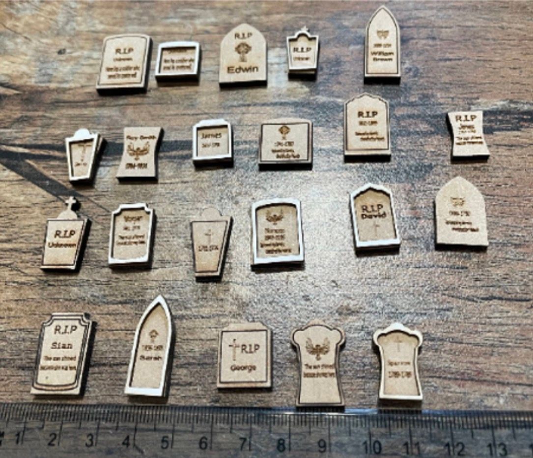 GRAVESTONES Pack of 22 engraved with text 1/48 scale