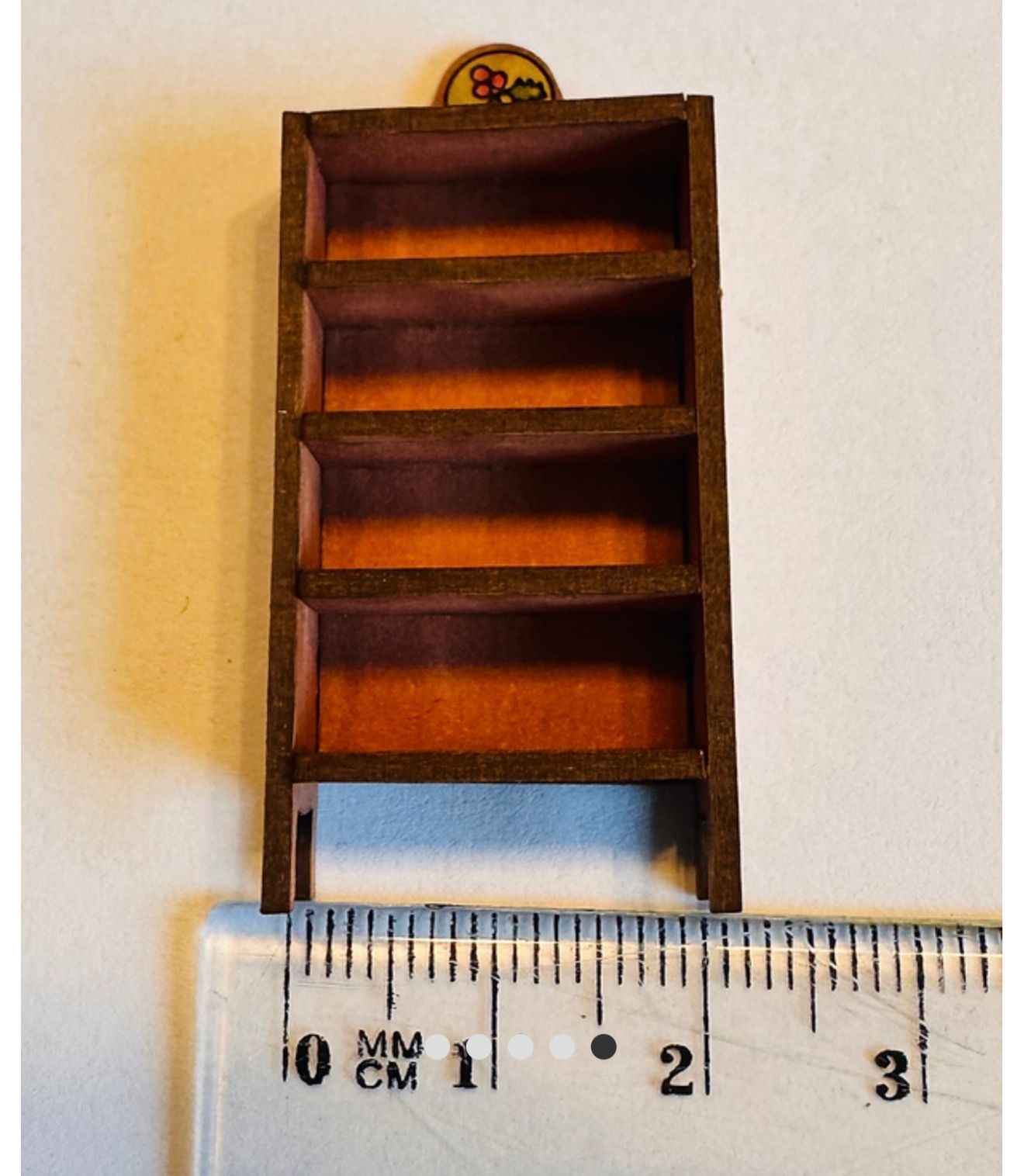 1/48th kit, Holly shelves Flat packed, in kit form and ready for construction in colours of your own choosing. Size: 2.1 cms wide x 4.4 cms high including the top decoration x 0.8 cms deep. Designed and copyrighted by Raptoor Note: our work conforms fully to the General Product Safety Regulations as laid down by the EU.