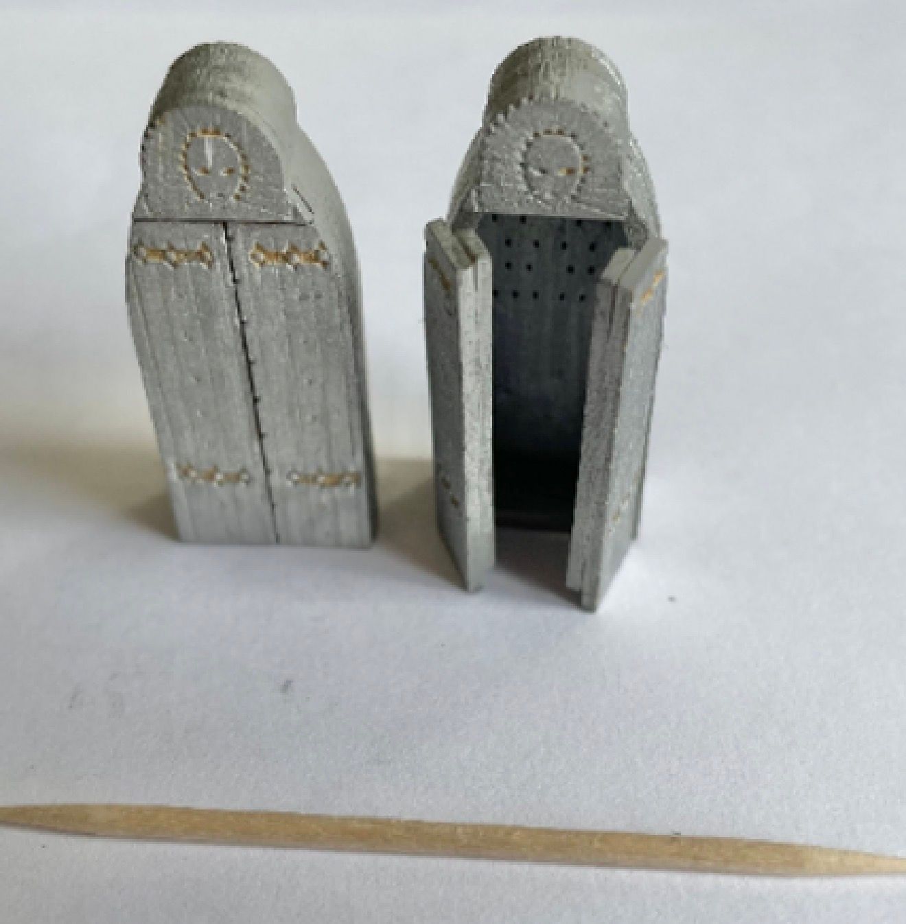 Flat packed in kit form and ready for construction in colours of your own choosing. Doors can be glued open or closed.
