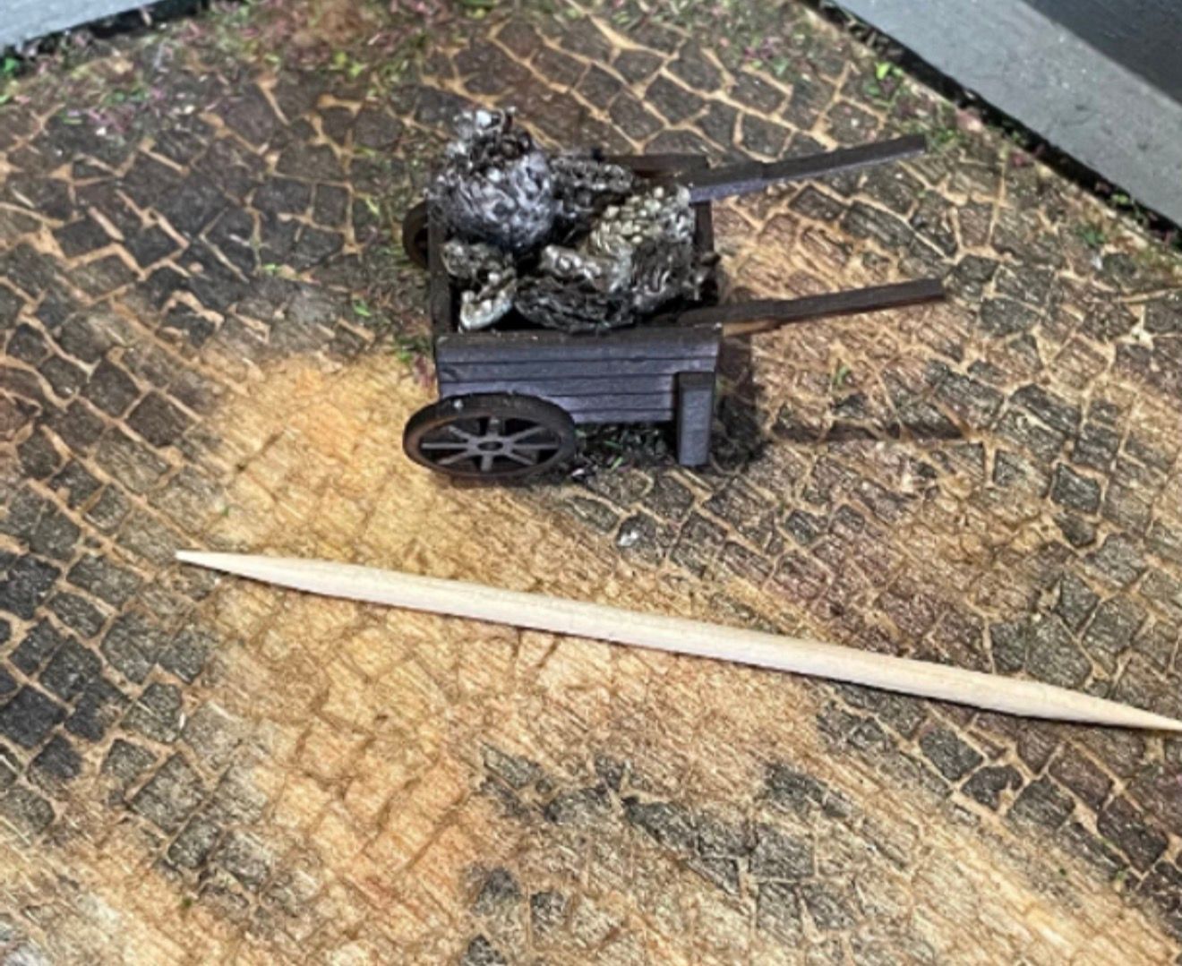 1/48th Market Hand Cart Flat packed, in kit form and ready for construction in colours of your own choosing. Size: from handle tip to end of the cart, depending on the position the handles bars are placed: 3.2 cms long x 1.6 cms high x 1.2 cms wide. Designed and copyrighted by Raptoor Note: our work conforms fully to the General Product Safety Regulations as laid down by the EU.