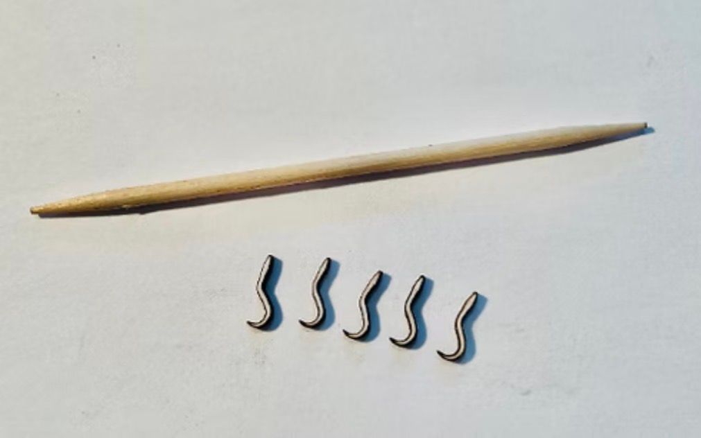 1/48th meat hooks, 5 in a pack. Flat packed, in kit form and ready for construction in colours of your own choosing. Size: 0.8 cms long each hook I combine postage, so please send me a message to discuss. Designed and laser cut by Raptoor. Note: our work conforms fully to the General Product Safety Regulations as laid down by the EU.