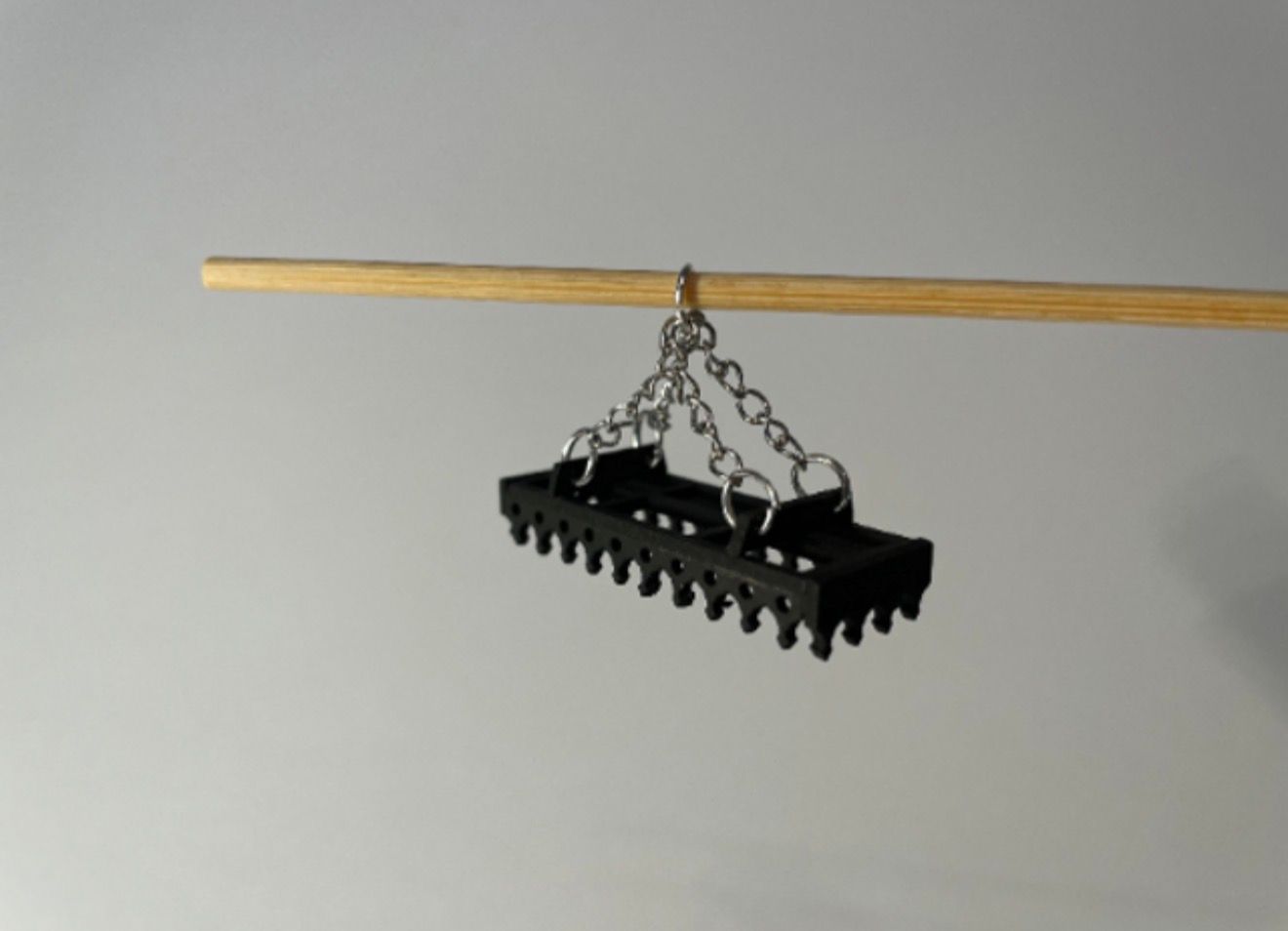 1/48th kit Merlin’s chandelier Flat packed, in kit form and ready for construction in colours of your own choosing. This is an advanced kit for an experienced dolls house maker. Non lit. Size: 2.5 cms long x 1 cm wide. The kit contains the chains/rings for construction. Chain and rings colour may vary. A chandelier also known as girandole, candelabra lamp, or least commonly suspended lights is a branched ornamental light fixture designed to be mounted on ceilings. Chandeliers are distinct from pendant lights, as they usually consist of multiple lamps and hang in branched frames, whereas pendant lights hang from a single cord and only contain one or two lamps with fewer decorative elements. Due to their size, they are often installed in hallways, living rooms, staircases, lounges, and dining rooms. However, miniature chandeliers also exist, which can be installed in smaller spaces such as bedrooms or small living spaces. Chandeliers evolved from candelabra and were invented during the medieval period. They originally used, as their source of light candles, which remained in use until the 18th century Designed and laser cut by Raptoor. Note: our work conforms fully to the General Product Safety Regulations as laid down by the EU.