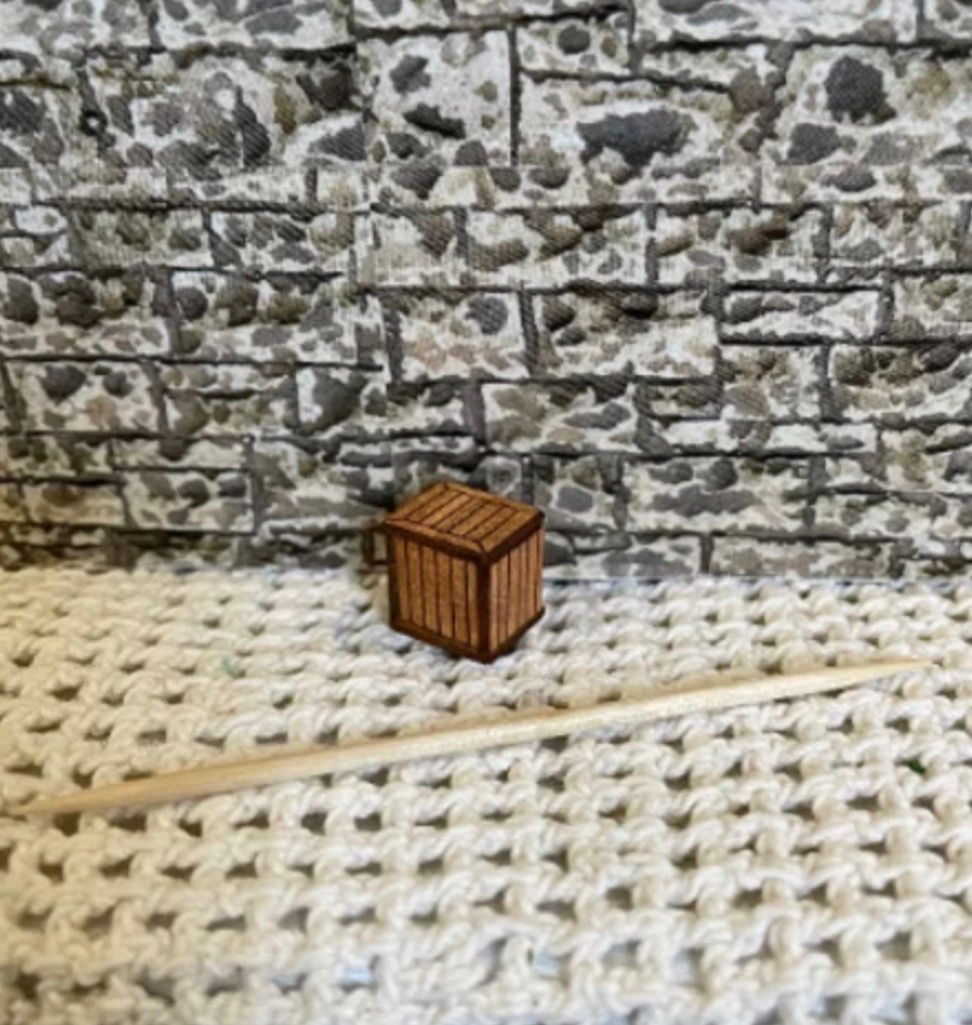 1/48th crates, 2 in a pack. Flat packed, in kit form and ready for construction in colours of your own choosing. Size: 1.2 cms wide x 1.1 cms long x 1.2 cms high. A crate is a large shipping container, often made of wood, typically used to transport or store large, heavy items. Designed and copyrighted by Raptoor Note: our work conforms fully to the General Product Safety Regulations as laid down by the EU.