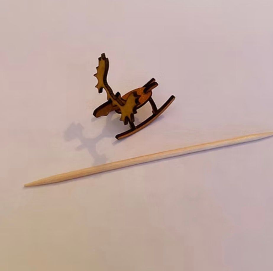 1/48th kit, rocking moose. Flat packed, in kit form and ready for construction in colours of your own choosing. This is an advanced kit for an experienced dolls house maker. Size: 2.4 cms long x 1.1 cms wide depending on how you install the skis. Designed and copyrighted by Raptoor Note: our work conforms fully to the General Product Safety Regulations as laid down by the EU.