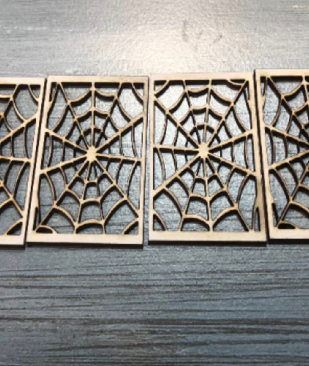 1/48th quarter scale spider web window. 4 in a pack. Size: 1 inch wide by 1.5 inches length. Flat packed and ready for construction in colours of your own choosing. Matches our spider web gate with surround and bat fences. All available separately. A Spider is the symbol for the infinite possibilities of creation. Her eight legs represent the directions on the Medicine Wheel and the four winds of change. Spider weaves the web of fate for those who get caught in her web and become her dinner. Spider bestows the power to work magic over people and things. ... If a web is destroyed, spider recycles it and weaves it anew. So spider allows the individual to assimilate negative experiences and use them for gain. Spider’s appearance can symbolize one’s fear. Designed and laser cut by Raptoor. Note: our work conforms fully to the General Product Safety Regulations as laid down by the EU.