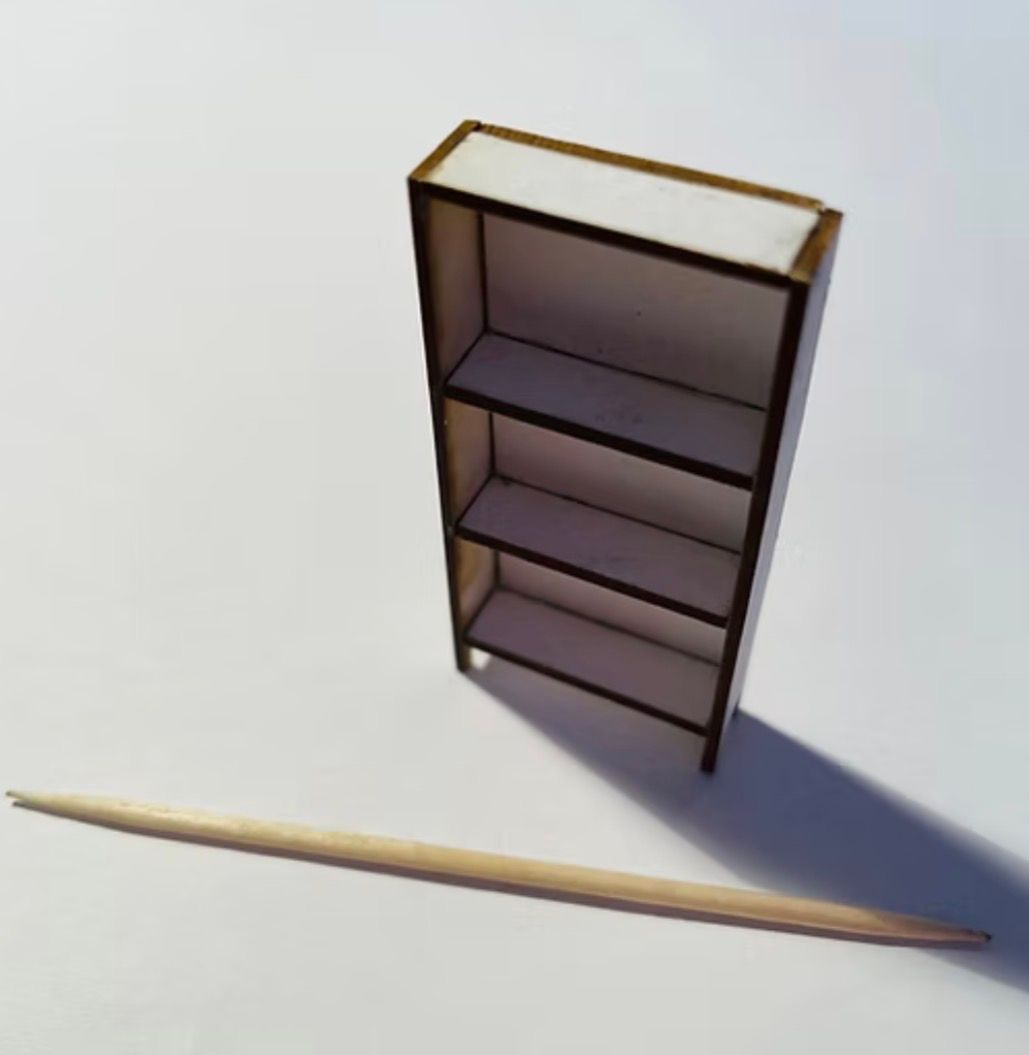 1/48th bookcase/quarter scale. Size: 5 cms high x 2.5 cms wide x 7 mm deep. Flat packed in kit form and ready for construction in colours of your own choosing. I combine postage, so please send me a message to discuss. A bookcase, or bookshelf, is a piece of furniture with horizontal shelves, often in a cabinet, used to store books or other printed materials. Bookcases are used in private homes, public and university libraries, offices and bookstores. Bookcases range from small, low models the height of a table to high models reaching up to ceiling height. Shelves may be fixed or adjustable to different positions in the case. In rooms entirely devoted to the storage of books, such as libraries, they may be permanently fixed to the walls and/or floor. In Latin and Greek the idea of bookcase is represented by Bibliotheca and Bibliothēkē (Greek: βιβλιοθήκη), derivatives of which mean library in many modern languages. A bookcase is also known as a bookshelf, a bookstand, a cupboard and a bookrack. In a library, large bookshelves are called “stacks.” Designed and laser cut by Raptoor. Note: our work conforms fully to the General Product Safety Regulations as laid down by the EU.