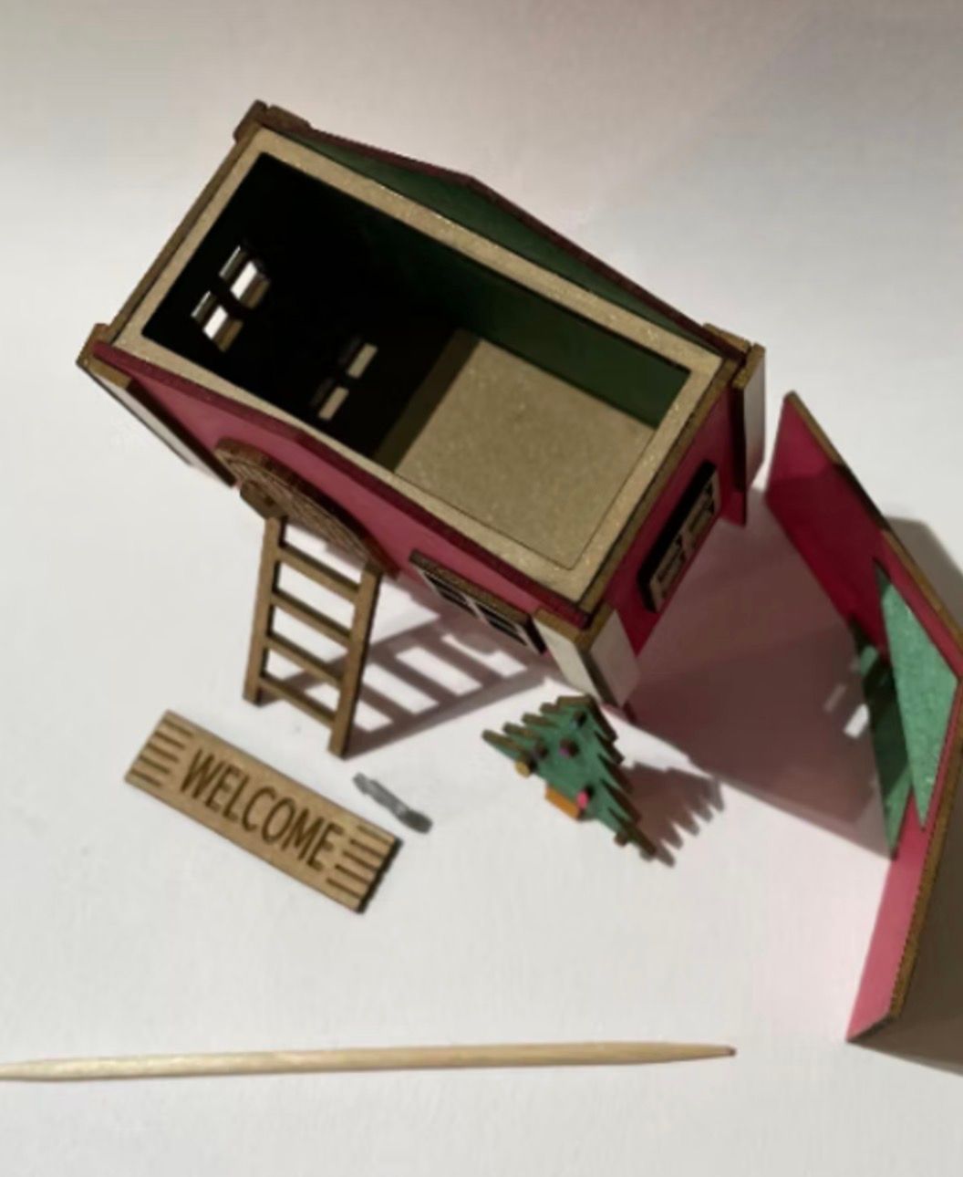 1/48th Tonttu/fairy/elf advent calendar or house. Size: 6.5 cms high x 3 cms deep. Flat packed in kit form for you to decorate yourself. This kit is for an advanced dolls house maker. Indoor use only. The roof is removable so that you can leave a small surprise inside each day during December. This helps reduce advent calendar waste and the house can be used year after year. Text for the door mat can be done in any language as long as you let us know the words you require. For example, dogs welcome, wipe your boots, fairies live here are just some examples. Korvatunturi is best known as the home of Father Christmas (or Joulupukki in Finnish). According to Finnish Folklore, this land is the location of Father Christmas’ secret workshop, where toys, trinkets and gifts are made and eventually wrapped by elves. Known for their good-natured demeanour and their role as guardians of homes, these gnomes are also responsible for analysing weather patterns for the yearly gift-giving trip around the world. People have also said that the ear-shaped structure of the fell allows Father Christmas to hear the wishes of every child on Earth. In popular media, this legend has been adapted into the film Rare Exports: A Christmas Tale. For letter mail to Father Christmas Korvatunturi has postal code 99999 Korvatunturi, even though all post sent to this address will actually be carried to Santa Claus Village at Rovaniemi. The words tomte and tonttu are derived from the term for a place of residence and area of influence: the house lot, tomt (Swedish) or tontti (Finnish). According to tradition, the nisse lives in the houses and barns of the farmstead, and secretly act as their guardian. A tonttu is a miniature mythical humanoid creature believed to live in the forests and in or near people’s dwellings, similar to an elf or gnome. An elf (Santa’s helper). Designed and copyrighted by Raptoor Note: our work conforms fully to the General Product Safety Regulations as laid down by the EU.