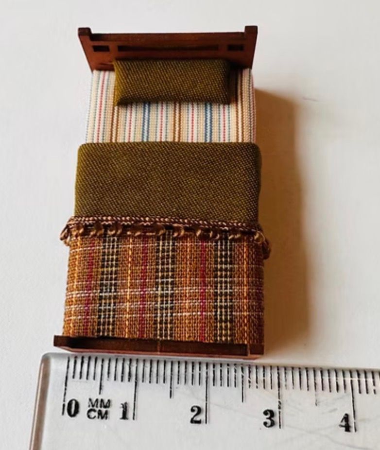 Flat packed, in kit form and ready for construction in colours of your own choosing. Fabric is not included and is a suggestion for decoration. Size: 4.5 cms long x 2.3 cms deep x 1.9 cms height Designed and copyrighted by Raptoor Note: our work conforms fully to the General Product Safety Regulations as laid down by the EU.
